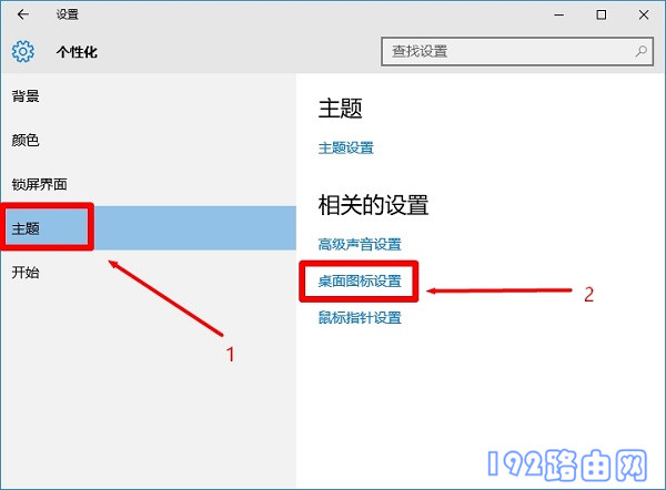 2、在打开的页面中,点击:主题 这个选项 ——> 然后点击右侧页面中的:桌面图标设置