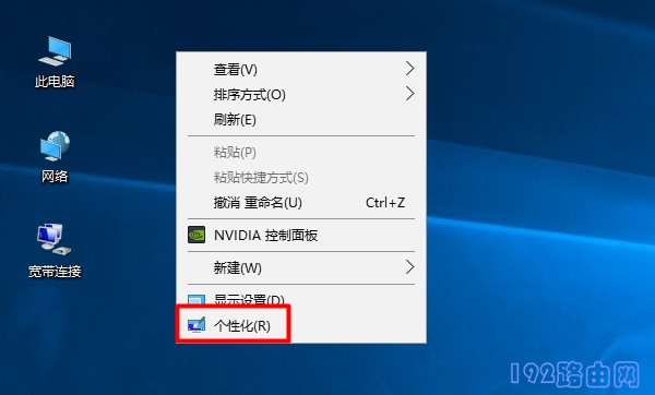 1、在Windows10电脑的桌面中,点击:鼠标右键 ——> 选择:个性化设置 这个选项打开。