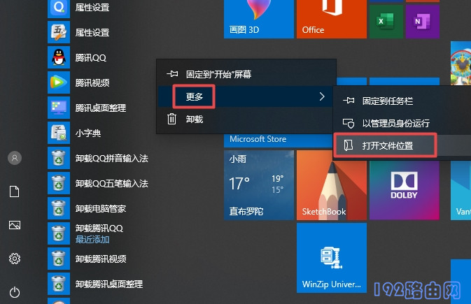 也可以点击鼠标右键QQ——> 选择:更多 ——> 打开文件所在位置