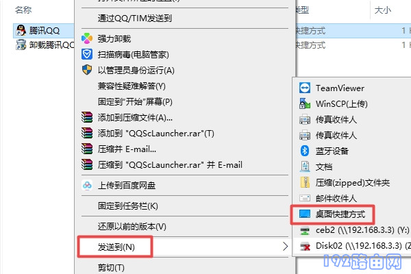 然后鼠标右击QQ图标 ——> 选择 发送到 ——> 桌面快捷方式,如下图所示。