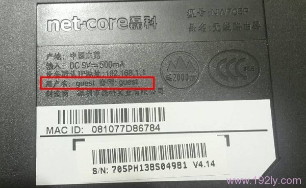 (2)、如果在底部标签上查看到的默认密码不是admin,例如磊科路由器,默认密码是:guest。请使用标签上给出的默认密码进行登录。