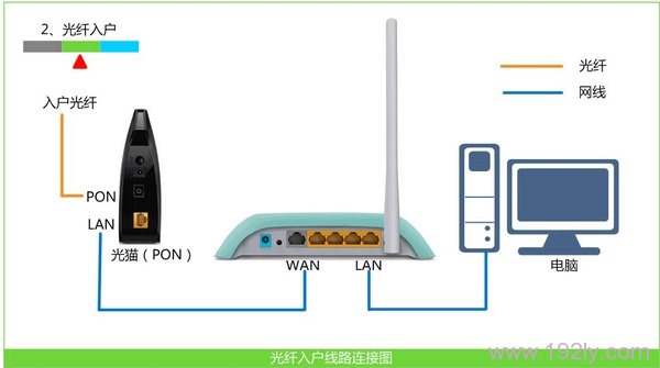 2、光钎上网:请准备2根网线,一根网线用来连接光猫与路由器的WAN接口;另一根网线用来连接路由器上LAN(1/2/3/4)接口中的任意一个与计算机。
