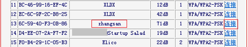在扫描结果列表中,找到要扩展的无线信号(本例中是:zhangsan)——>点击“连接”,如下图。